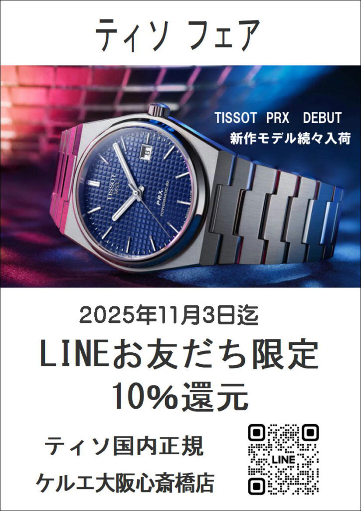 大阪屈指のティソ(TISSOT)正規販売コーナー「TIME’S GEAR あべのキューズモール店」「ケルエ大阪心斎橋店」。新作・限定から人気モデルまで正規販売店舗最大級の品揃えです。