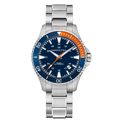 カラフルなダイヤルとストラップのバリエーションが豊富な「カーキ ネイビー スキューバ」にトレンドカラーのブルーとブランドカラーのオレンジを組み合わせたモデルが誕生しました。